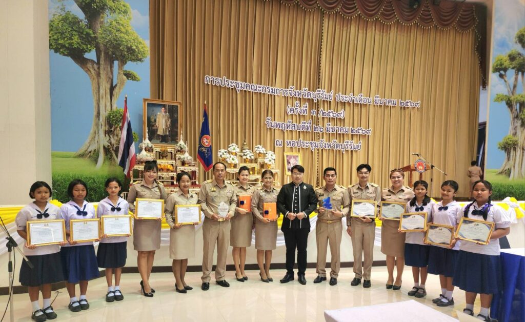 ครั้งนี้ นายประสิทธิ์ พิเศษ ผู้อำนวยการสำนักงานเขตพื้นที่การศึกษาประถมศึกษาบุรีรัมย์ เขต 4 มอบหมายให้ นายศุภมิตร วัฒนานุสิทธิ์ ผู้อำนวยการกลุ่มพัฒนาครูและบุคลากรทางการศึกษา เป็นผู้กล่าวรายงานการมอบรางวัล ในคราวประชุมคณะกรมการจังหวัดบุรีรัมย์ ประจำเดือนมีนาคม 2569 (ครั้งที่ 3/2569) ณ หอประชุมจังหวัดบุรีรัมย์