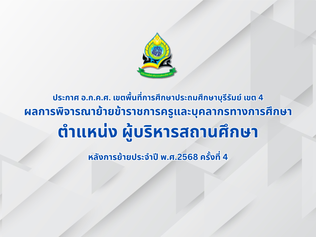 ผลการพิจารณาย้ายข้าราชการครูและบุคลากรทางการศึกษา ตำแหน่งผู้บริหารสถานศึกษา หลังการย้ายประจำปี พ.ศ.2568 ครั้งที่ 4